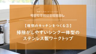 家づくりのこと 【理想のキッチンをつくる③】掃除がしやすいシンク一体型のステンレス製ワークトップ