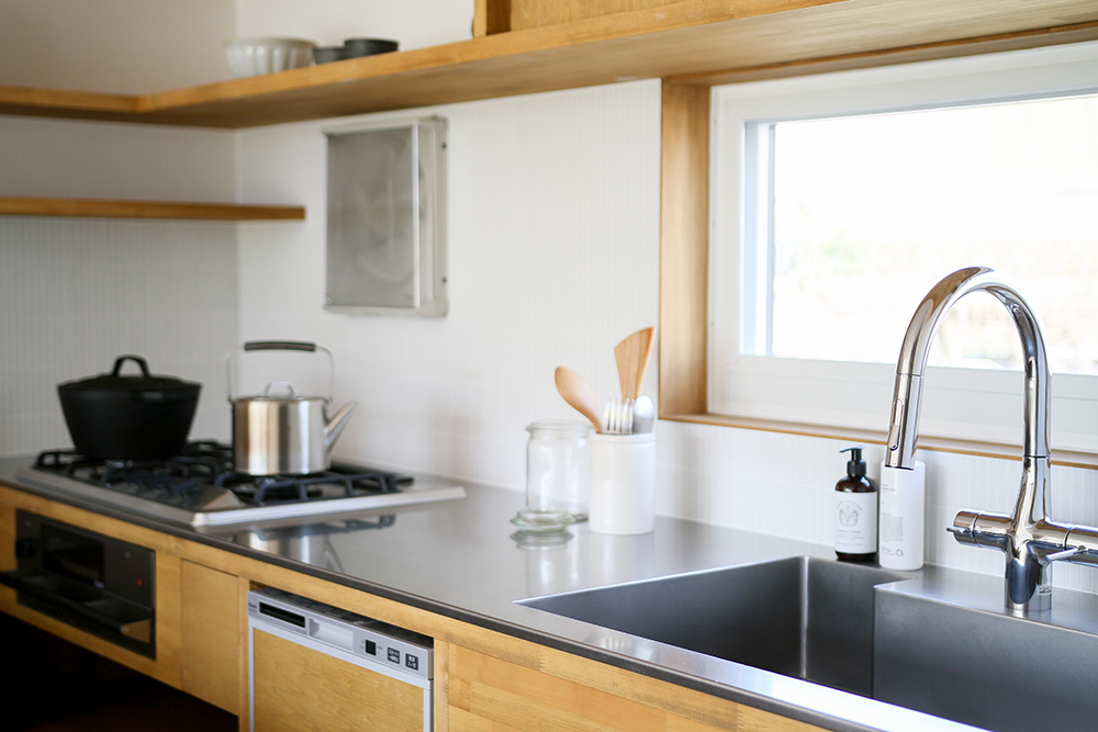 キッチン全体は木の造作で作るので、最も木と相性が良いのがステンレスだったからです。
