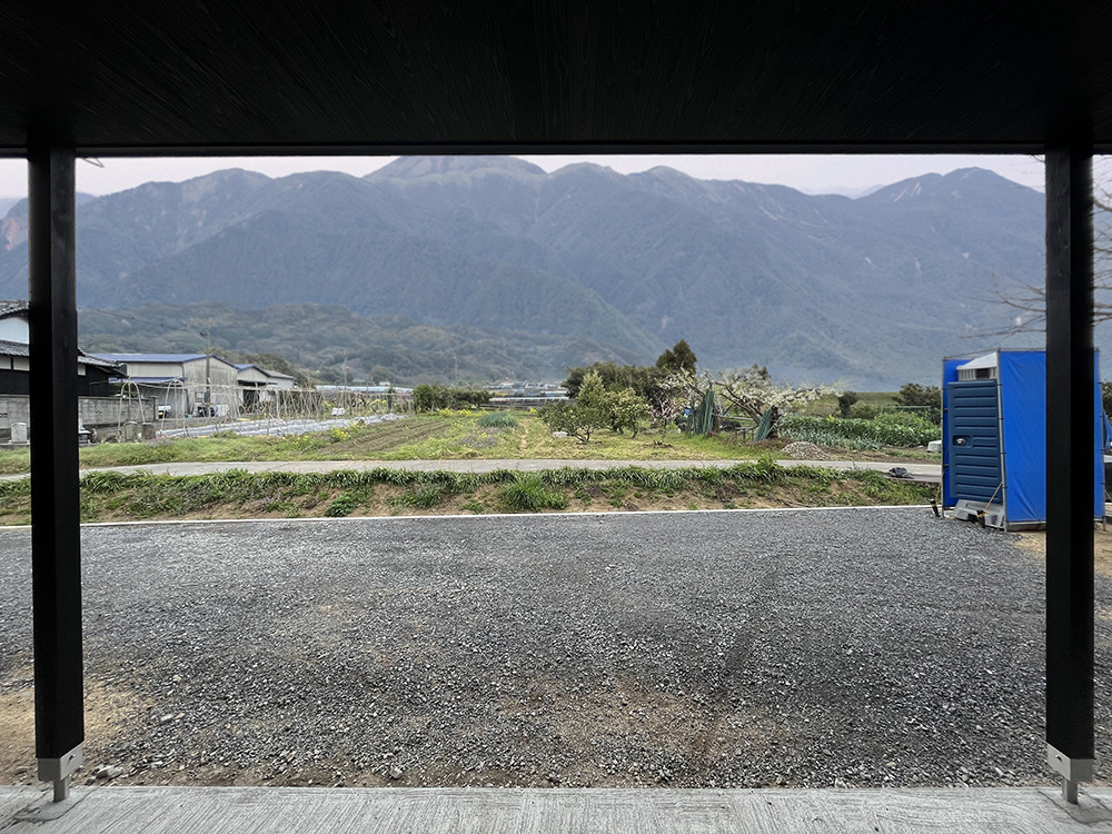 真砂土で水平に造成され、表面には砕石が敷かれて転圧してあるのでカチカチ。建築工事の為には仕方のないことではありますが、ここに何か植えてもちゃんと育つとは思えない雰囲気です。