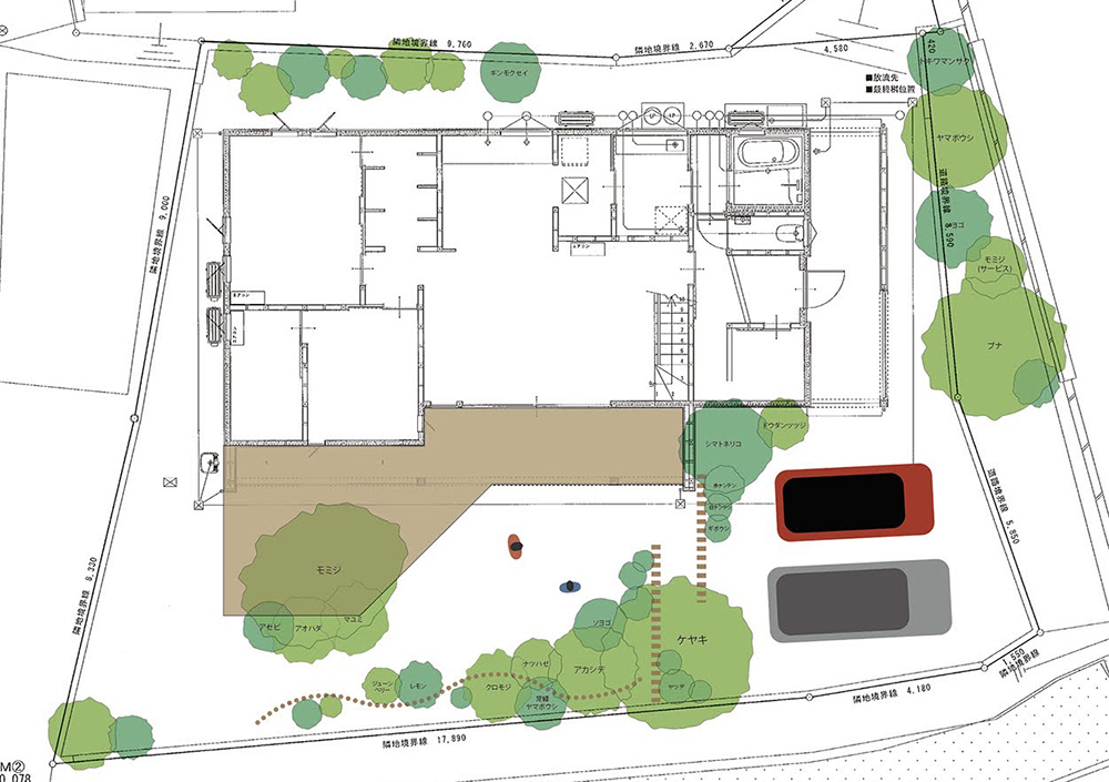 設計士さんから正確な図面をもらって以降、本を読んだりwebで調べながら色々な樹種を図面上に配置してみてはやり直す、ということを繰り返していました。
