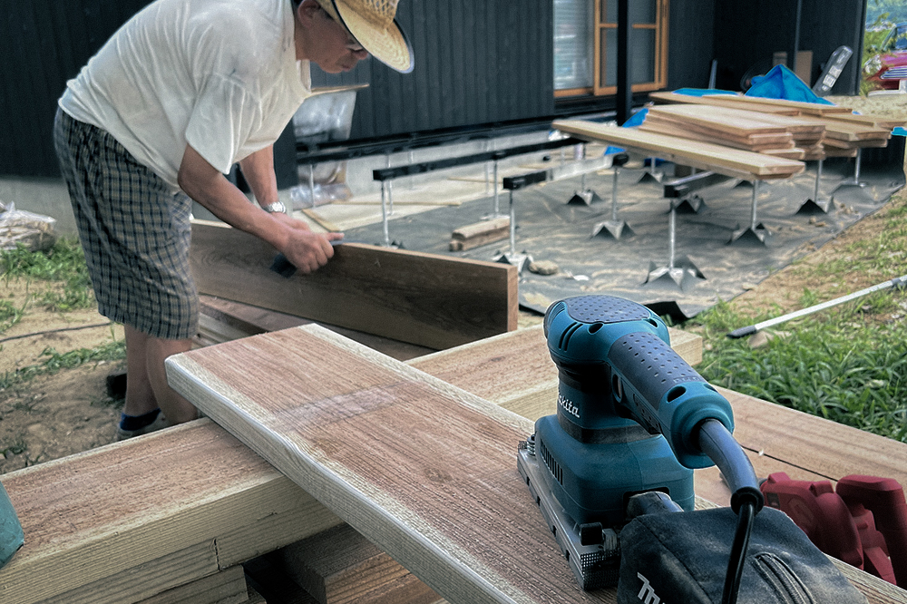 ④デッキ材の下準備-研磨