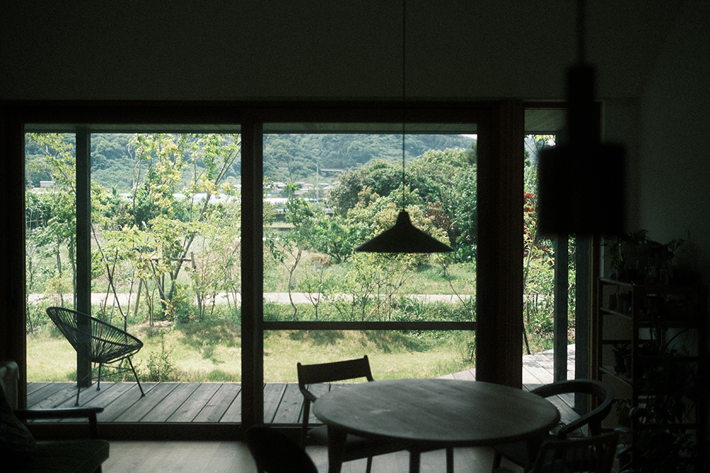 LDKいっぱいに見える景色は手入れの良き届いた日本庭園というわけではありませんが、それでも庭木や奥に見える山々が季節ごとに色を変えていく様子は、毎朝ロールスクリーンを開けるのが楽しみになります。