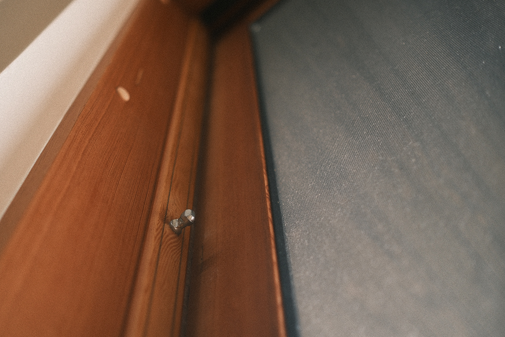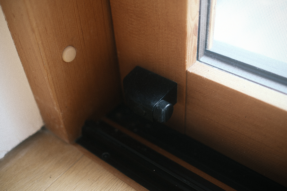 で、今回この記事を書くにあたって改めてまじまじとこの窓を見ていたんですが、よくよく考えるとこの窓って、普通の窓にはついてる、爪状の金具を引っ掛けるといった所謂「カギ」が無い・・・。